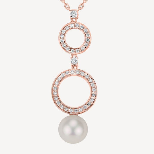 QA Blossom Blush Necklace with Diamonds and Pearls - rose