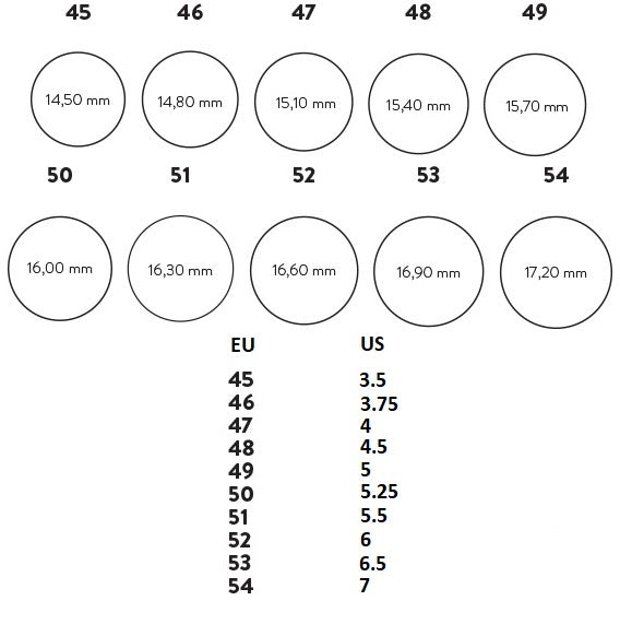 If you're unable to decide on a ring size, you can try to estimate the size or order an average size. In case of an inaccurate "guess," there's no need to worry, as we will adjust the size for you for free, exchange the ring, or create a new one in the size you need.